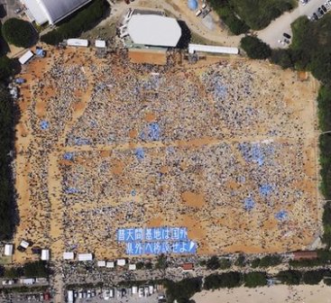 參加集會(huì)的有眾多普通市民和縣內(nèi)41個(gè)市町村的39名首長(zhǎng)。除了該縣選出的執(zhí)政黨國(guó)會(huì)議員外,前自民黨政權(quán)時(shí)期同意將機(jī)場(chǎng)遷至名護(hù)市的自民黨和公明黨的縣支部也參加了大會(huì)。自民黨和公民黨沒(méi)有參加去年11月的2萬(wàn)人反基地集會(huì)。