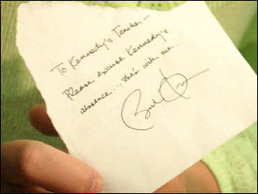 柯普斯說:“她叫肯尼迪。隨后,肯尼迪穿過人群去領(lǐng)奧巴馬幫她寫的假條,奧巴馬則專心聽她父親提的健保問題。