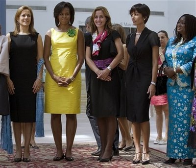 中新網(wǎng)7月11日電 G8領(lǐng)袖忙著討論世界大事,第一夫人們也忙得不得了。據(jù)臺(tái)灣東森新聞網(wǎng)報(bào)道,美國(guó)第一夫人米歇爾與奧巴馬一同訪問(wèn)俄羅斯時(shí),手上的名牌鱷魚(yú)價(jià)格昂貴,顯然改走起奢華風(fēng),連帶英國(guó)首相夫人莎拉也受到感染,在G8高峰會(huì)上,6小時(shí)換3套衣服。