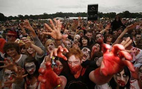 這幕駭人畫面出現(xiàn)在該市舉行的大寒音樂節(jié)(Big Chill festival)上,共有4026人把自己打扮成形狀可怖的僵尸。他們還參與了一部僵尸片的拍攝。不過,主辦單位相信實際數(shù)目遠(yuǎn)不止此,因為還有很多人沒有填寫表格。