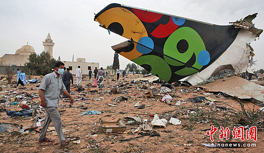 中新網5月12日電 綜合報道 當地時間12日早晨6點,一架從南非約翰內斯堡起飛的利比亞泛非航空公司(Afriqiyah Airways)的空客A330客機在試圖降落利比亞首都的黎波里機場時突然墜毀,機上載有104名乘客和機組人員,除1名據信為荷蘭籍的10歲男童幸存外,其余103人全部遇難。