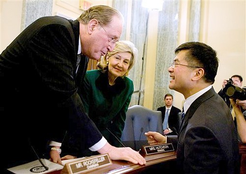中新網(wǎng)3月19日電 據(jù)美聯(lián)社等媒體消息,獲提名出任美國商務(wù)部長(zhǎng)的美籍華人駱家輝當(dāng)?shù)貢r(shí)間18日出席參議院聽證會(huì)。他表示,面對(duì)金融危機(jī),一定要采取“改造、改組及改進(jìn)”策略,創(chuàng)造就業(yè)機(jī)會(huì)。他還就中美貿(mào)易等議題表態(tài)。