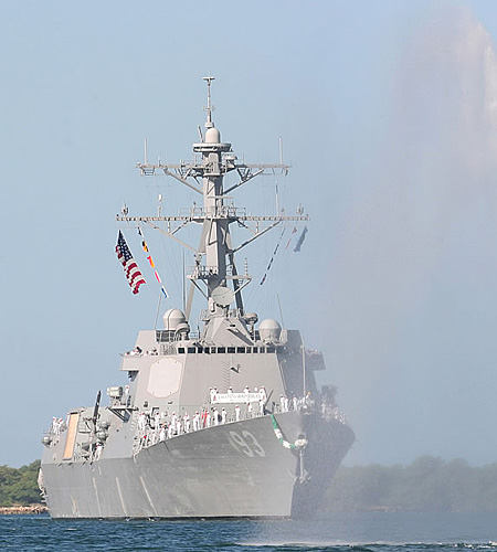 “鐘云”號是美國海軍史上第一艘以華人名字命名的軍艦。這艘DDG93驅(qū)逐艦是為紀(jì)念二戰(zhàn)時擊退日本神風(fēng)敢死隊的華裔海軍少將鐘云(Gordon Paie'a Chung-Hoon)而命名,配有“宙斯盾”作戰(zhàn)系統(tǒng),造價13億美元,是目前世界海軍最先進(jìn)的驅(qū)逐艦之一。