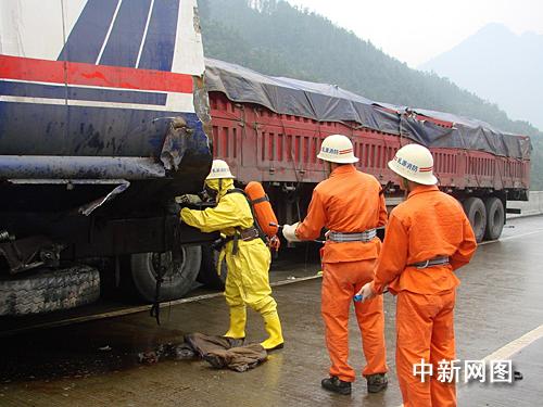 中新網(wǎng)韶關(guān)1月9日電(馮昶 李凌 李軍 鄭忠輝 黃之輝)今日上午8時(shí)許,京珠北高速公路韶關(guān)段乳源境內(nèi)南行79公里處發(fā)生三車相撞的交通事故,肇事車輛中有一輛滿載35噸化學(xué)品三氯丙烷廢料的罐體車發(fā)生泄漏。事故中有一人受傷,另有一名駕駛員跳車后下落不明。