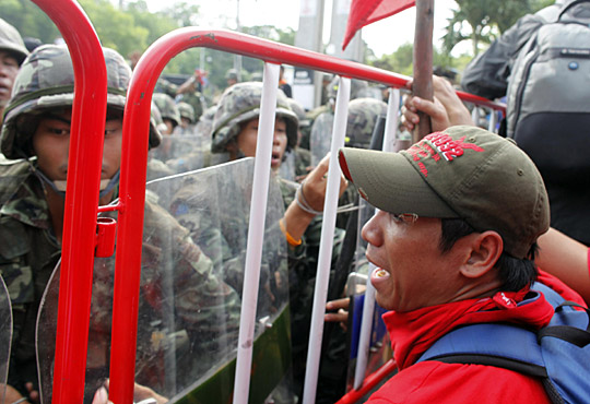 泰國反獨裁民主聯(lián)盟支持者11日包圍了總理阿披實位于首都曼谷的住所。另外,至少數(shù)百名反獨聯(lián)示威者強行沖進東盟系列峰會媒體中心。