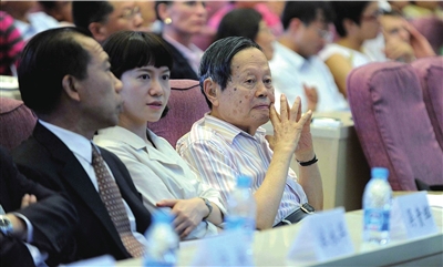 諾貝爾物理學(xué)獎(jiǎng)獲得者、美國(guó)能源部部長(zhǎng)、華裔,朱棣文的三重身份吸引了大批清華學(xué)子,諾獎(jiǎng)得主楊振寧和夫人也到場(chǎng)旁聽捧場(chǎng),能容納三百人的報(bào)告廳座無虛席,過道都站滿了慕名前來的同學(xué)。11點(diǎn),朱棣文準(zhǔn)時(shí)現(xiàn)身,盡管天氣炎熱,他仍然正裝穿扮,白色襯衫、深色西裝、深色領(lǐng)帶。