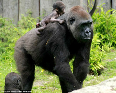 而如今,動物園高興的宣布母猩猩又添一子,已經(jīng)3個月大的寶寶被媽媽照顧的無微不至。只見大猩猩用有力的手臂把孩子攬入懷中,不時溫柔的撫摸,盡顯母愛。對比去年的場景,如今大猩猩的臉上則透出喜悅,目光流露出無比的慈愛,來參觀的游客再次被這只通人性的大猩猩打動了。
