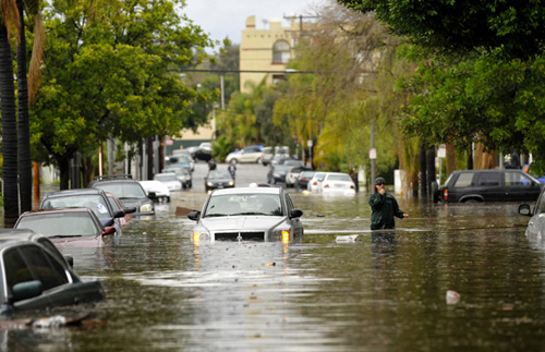 自十七日開始,美國(guó)加州南部地區(qū)普遍遭遇暴風(fēng)雨襲擊,部分地區(qū)發(fā)生山洪和泥石流。今天,暴風(fēng)雨再次肆虐洛杉磯等地,美國(guó)國(guó)家氣象局中午一度發(fā)布南加州沿海將發(fā)生龍卷風(fēng)的警報(bào)。