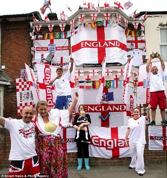 來自科爾福德的瑞安•奧德爾就將自家的房屋刷成了一幅巨大的英格蘭旗幟,上面還貼上了球隊的隊標,借以表達他對球隊的支持。球迷托尼•巴德斯則花了一周的時間將自家的房屋用各式各樣的旗幟遮了個嚴嚴實實。就連英國農場的馬匹也都穿上了特制的英格蘭足球隊隊服,在草場狂奔。