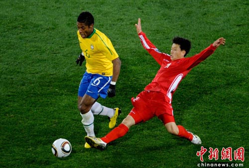 中新網(wǎng)6月17日電 據(jù)韓國(guó)《朝鮮日?qǐng)?bào)》報(bào)道,當(dāng)?shù)貢r(shí)間15日,巴西國(guó)家隊(duì)在南非世界杯小組賽第一輪同朝鮮隊(duì)的比賽上以2比1險(xiǎn)勝對(duì)手。巴西隊(duì)主教練鄧加驚訝地表示:“朝鮮隊(duì)的防守幾近完美!