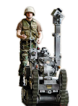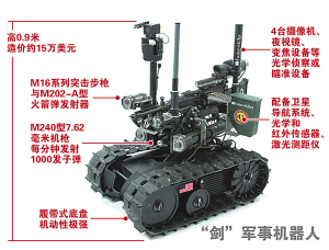 部署到阿富汗的智能機器人“赫耳墨斯”主要用于探穴鉆洞,它身上安裝有兩個照相機,能爬進漆黑洞穴并向外發(fā)送圖片;美軍機器人“劍”在伊拉克戰(zhàn)場更是神通廣大,它能輕易通過任何阻礙,備彈200發(fā),裝備一挺經改造的M249型機槍,射速高達1000發(fā)/分鐘,火力強度足以與一挺重機槍媲美;而“背包”機器人則能在巷戰(zhàn)環(huán)境中捕捉、分辨反美武裝狙擊手的細微動靜;“嗅彈”機器人能靈敏地嗅出偽裝起來的爆炸物;名為“仿生蒼蠅”的機器人則可做一些復雜的手術……