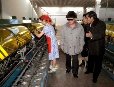金正日第一站來(lái)到了平壤紡紗工廠,他走訪了卷絲、紡紗等多個(gè)車間,并詳細(xì)詢問(wèn)了絲綢制造的技術(shù)更新等問(wèn)題。