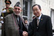 潘基文與卡爾扎伊討論了阿富汗的安全局勢、社會經(jīng)濟(jì)發(fā)展以及今年將舉行的選舉等問題。