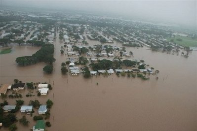 澳大利亞北部則是一夜之間洪水泛濫,350厘米的雨量導(dǎo)致大水沖進城鎮(zhèn),造成河水高漲。昆士蘭幾乎全成了災(zāi)區(qū),最近兩次颶風(fēng)所帶來的暴雨淹沒了100萬平方公里的土地與3000民宅。蔗田與畜牧業(yè)也遭受洪水肆虐,數(shù)以萬計的牲畜死亡。