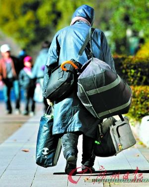 一名日本流浪漢帶著全部家當(dāng)踽踽而行。