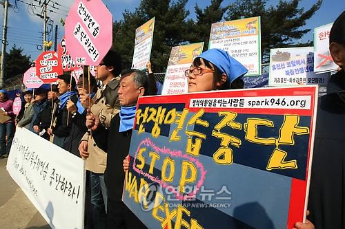 在光州,30多名6.15共同委員會(huì)光州全南本部成員,在全南道舊政府大樓前舉行記者會(huì)表示:“目前韓半島處于高度緊張狀態(tài),應(yīng)停止大規(guī)模的戰(zhàn)爭演習(xí)!