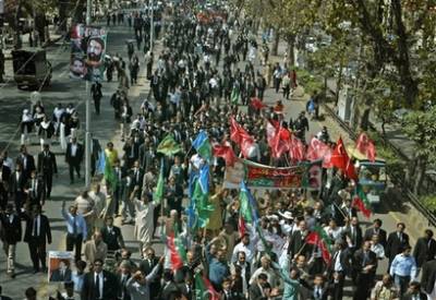 中新網(wǎng)3月13日電 據(jù)新加坡《聯(lián)合早報(bào)》報(bào)道,盡管政府下令禁止示威活動(dòng),但巴基斯坦律師和反對黨成員仍執(zhí)意在12日舉行全國性的示威游行。示威者要求總統(tǒng)扎爾達(dá)里履行承諾,讓那些被前總統(tǒng)穆沙拉夫開除的法官復(fù)職。