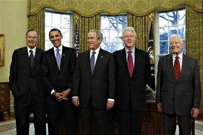 中新網(wǎng)1月8日電 據(jù)美國(guó)媒體報(bào)道,美國(guó)當(dāng)選總統(tǒng)奧巴馬7日稱,他與布什以及三位前總統(tǒng)克林頓、老布什和卡特共進(jìn)午餐將是一次“非同尋常的聚會(huì)”。