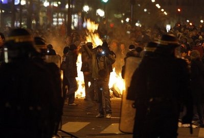 法國(guó)大罷工演變成騷亂 示威者大街上放火(組圖)