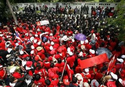 被圍堵的建筑物還包括樞密院大臣炳.廷素拉暖的官邸,示威者指他在2006年政變中,有份參與推翻他信。示威者大叫“迎回他信,阿披實(shí)滾蛋!”等口號,并計劃集會直至明日。組織者稱示威人數(shù)多達(dá)30萬。