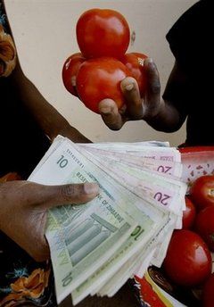 據(jù)印度IANS通訊社2日報(bào)道,去年8月,津巴布韋中央銀行宣布去掉鈔票后的10個(gè)零,但由于惡性通貨膨脹又漲了回來。目前,津巴布韋的通貨膨脹率已經(jīng)達(dá)到了百分之10億。周日,一美元可以兌換250萬億津巴布韋元。