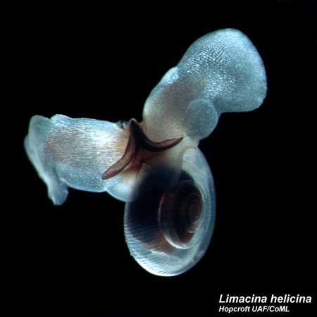 據(jù)臺灣東森新聞報道,整年冰天雪地的南北極,除了大家所熟之的北極熊和企鵝外,海底下其實還蘊藏了豐富的生物。像是透明的螺種,因為頭頂上長著兩顆像豌豆的角,被稱做“蟠虎螺”;至于頭頂尖尖、睜著兩個圓圓大眼的可不是烏賊,而是全世界最耐寒的“獨角雪冰魚”。
