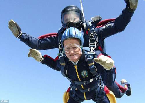 中新網4月5日電 據(jù)香港《大公報》六日援引外電報道,英國一位現(xiàn)年九十七歲的老人四日乘飛機從三千多米高空跳傘并安全返回地面,慶祝自己即將到來的九十八歲生日。