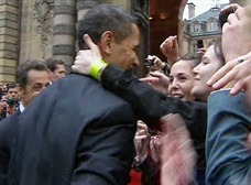 和前任美國(guó)總統(tǒng)布什相反,奧巴馬在法國(guó)極受歡迎,但他似乎對(duì)法國(guó)人稱為“吻面禮”的傳統(tǒng)禮節(jié)有些不知所措。在法國(guó),即使是相對(duì)陌生的人也可以用吻面禮互致問(wèn)候。