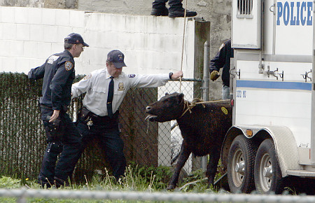 這只母牛還不到一歲,6日下午一點(diǎn)多的時(shí)后從靠近158街的比弗路(Beaver Road)穆薩哈拉(Musa Hala)屠宰場(chǎng)逃出來(lái)。屠宰場(chǎng)人員馬上呼叫警方緊急協(xié)助,但莫莉還是在外頭逃竄了一個(gè)多小時(shí)。