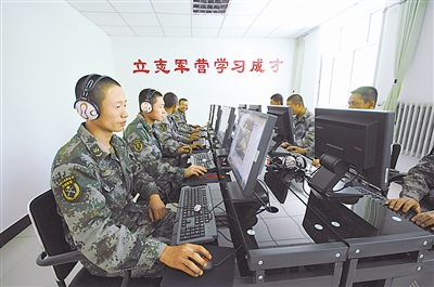 在海拔4900多米的紅其拉甫邊防連,記者看到官兵們坐在網(wǎng)絡(luò)室電腦前,尋找自己的“興奮點(diǎn)”。戰(zhàn)士王帥霖靈巧地操作鼠標(biāo),正在網(wǎng)上與戰(zhàn)友進(jìn)行CS電子游戲?qū)?zhàn)。鄰座的列兵迪力夏提則在網(wǎng)上查找最新的學(xué)習(xí)資料,準(zhǔn)備明年報(bào)考軍校。剛上山時(shí),迪力夏提曾擔(dān)心邊防條件差缺少各類(lèi)復(fù)習(xí)資料,沒(méi)想到政工網(wǎng)上的資料應(yīng)有盡有,完全可以滿(mǎn)足學(xué)習(xí)需要。記者了解到,從2005年開(kāi)始,南疆軍區(qū)及所屬部隊(duì)先后投入近千萬(wàn)元資金,用于網(wǎng)絡(luò)建設(shè)。如今,在南疆軍區(qū)風(fēng)雪邊關(guān),官兵們看最新大片,讀網(wǎng)絡(luò)小說(shuō),聽(tīng)流行歌曲,玩網(wǎng)絡(luò)游戲,不再是奢望。