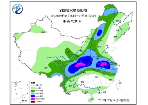 中新網(wǎng)7月12日電 據(jù)中央氣象臺網(wǎng)站消息,未來三天,青藏高原東部及其以東大部地區(qū)有一次明顯降水天氣過程,其中,黃淮西部、江漢、江淮、江南北部、四川盆地等地有大到暴雨,部分地區(qū)有大暴雨;青海東南部、內(nèi)蒙古中東部、黑龍江西北部、吉林東部、山西西南部、陜西大部、甘肅南部和東部、貴州大部、西藏東南部、云南西部和南部等地的部分地區(qū)有大雨,局地有暴雨;上述部分地區(qū)并伴有短時雷雨大風(fēng)或冰雹等強(qiáng)對流天氣。