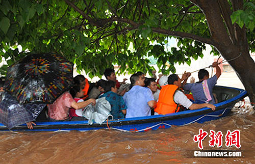 按照“由近及遠(yuǎn),先老人小孩,再大人”的救援思路,20余名群眾在消防官兵的引導(dǎo)、攙扶、背下,于15時(shí)50分被順利救出。此時(shí),洪水仍在不斷上漲。必須加快速度!在當(dāng)?shù)孛癖呐浜舷拢廊谥笓]部將救援人員分為搜救、沖鋒、接應(yīng)、器材準(zhǔn)備四個(gè)小組,并利用沖鋒舟搜尋被困群眾。由于水流太大,消防官兵不能用沖鋒舟從街道中心直線解救被困群眾,只能沿街道兩邊水流相對(duì)較緩處逐步搜尋。消防官兵用喊話、逐屋搜尋等方式,將群眾從水中逐一解救到船上。第一船12名群眾被告順利救出,第二船、第三船……