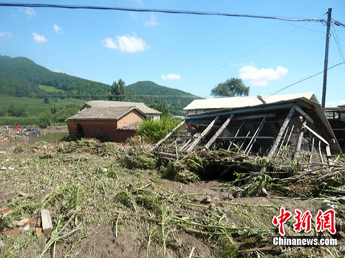 在梨樹溝斷橋旁,有幾名穿著迷彩服的民兵,正指揮著群眾小心過河。兩岸到處都是從鎮(zhèn)里出來和要進(jìn)鎮(zhèn)的群眾。記者一行開始渡河,隨后步行了幾公里進(jìn)入旺起鎮(zhèn)內(nèi),此時(shí)路面到處都是洪水過后的痕跡,一些居民正在清理馬路上的淤泥。