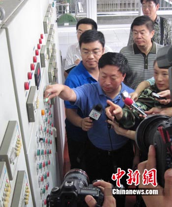 中新網(wǎng)通化8月4日電 (記者 吳兆飛 崔顏鋒)8月4日9時(shí)15分,吉林省通化市市長田玉林在當(dāng)?shù)貎羲畯S啟動了供水按鈕,這意味著經(jīng)過64個(gè)小時(shí)的緊張搶修,通化市終于恢復(fù)供水,預(yù)計(jì)在數(shù)小時(shí)后,33萬通化市民在家中將可以用上自來水。