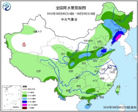 9日08時至10日08時,新疆西部和天山山區(qū)、西藏中東部、青海大部、西北地區(qū)中東部、內(nèi)蒙古東部、東北、華北中南部和東部、黃淮大部、江淮西部、江漢、江南中西部、華南、西南以及臺灣等地有小到中雨或陣雨,其中,內(nèi)蒙古東北部、東北大部、華北東南部、海南大部及雷州半島南部等地有大雨或暴雨;上述部分地區(qū)并伴有短時雷雨大風等強對流天氣。內(nèi)蒙古東北部、東北北部等地有4~6級風。黃海將有5~7級風、陣風可達8~9級,東海北部將有7~8級、陣風11~12級的大風,東海南部風力可達8~10級,臺灣海峽、南海將有6~7級風。