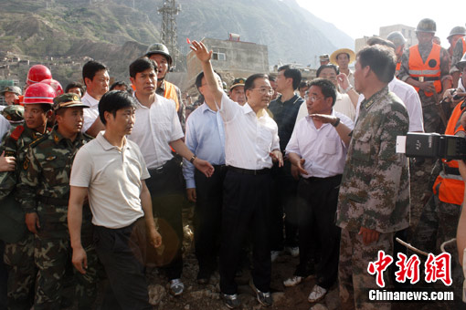 8日凌晨,甘肅省舟曲縣因強降雨引發(fā)滑坡泥石流,造成重大人員傷亡,電力、交通、通訊中斷。溫家寶于當日中午乘專機趕赴甘肅,途中在天水機場換乘直升機后輾轉前往舟曲縣。