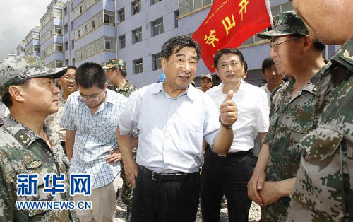 考察中,回良玉反復(fù)強調(diào),要進一步加快地質(zhì)災(zāi)害的隱患排查工作,嚴格防止次生地質(zhì)災(zāi)害的發(fā)生,及時轉(zhuǎn)移并妥善安置群眾,特別是對受災(zāi)群眾臨時安置點的選址工作,要嚴格進行安全評估,嚴防人民群眾生命安全受到威脅;同時,提前著手進行受災(zāi)群眾永久居住地的選址,這是災(zāi)后重建的一項重要基礎(chǔ)性工作。