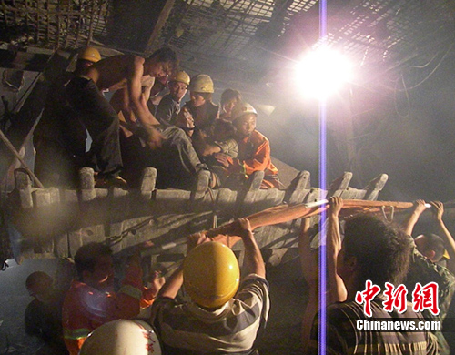 中新網(wǎng)汶川8月11日電(劉忠俊 李濤)11日凌晨4時(shí)32分,四川汶川縣草坡鄉(xiāng)草坡2號(hào)橋旁一在建隧道發(fā)生垮塌,一工人被巨石壓于其下,經(jīng)過(guò)消防官兵2個(gè)多小時(shí)的緊張救援被壓工人成功獲救。