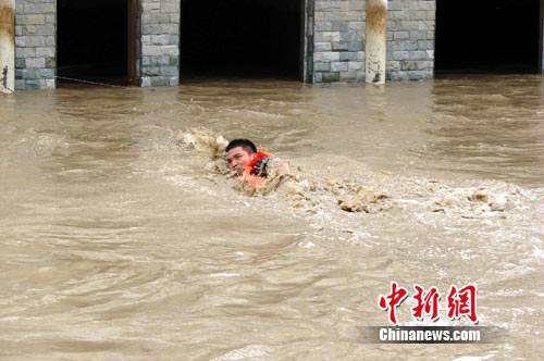 肆虐的泥石流將映秀鎮(zhèn)板房醫(yī)院沖毀,在現(xiàn)場,洶涌的洪水四處串流,淹沒了災后恢復重建的中攤堡大道,附近重建安置房、民工板房全部進水,深約1米多。