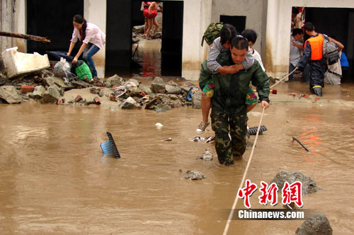 14日中午12點(diǎn)30分,阿壩支隊(duì)廖軍支隊(duì)長率郭興武參謀長等救援官兵從馬爾康驅(qū)車到達(dá)汶川徹底關(guān)大橋?yàn)?zāi)害現(xiàn)場,通過實(shí)地查看和詢問當(dāng)?shù)厝罕姷弥恒氪ㄉ称宏P(guān)村上銀杏組處泥石流阻斷河道形成堰塞湖,將國道213線淹沒200余米,最深處達(dá)4米。確認(rèn)車輛、人員短時(shí)間尚無通行的可能后,根據(jù)查看情形當(dāng)機(jī)立斷,立即組織疏散轉(zhuǎn)移附近群眾,廖支隊(duì)長率領(lǐng)官兵爬山淌水,一戶一戶的走,一個(gè)工地一個(gè)工地說,使附近260余名群眾和工人安全轉(zhuǎn)移到地勢較高的安全地段。