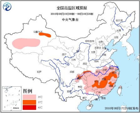 湖南南部、江西中部、浙江西部和福建西北部的部分地區(qū)易發(fā)生中暑,需做好應(yīng)對措施。