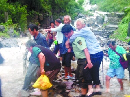 經(jīng)過艱難跋涉,救援人員在被洪水沖倒多次后,終于到達河對岸,在河道上成功拉起了兩條100多米長的繩索,固定之后建起了一條生命救援通道。救援人員到達采砂場后發(fā)現(xiàn),這里被困的36名群眾因寒冷和雨淋,已極度虛弱,根本無法利用繩索順利趟到河對岸。為確保群眾安全,救援人員決定在繼續(xù)增加橫跨河流繩索的同時,等到天明后,由消防官兵護送被困群眾趟過河流脫險。到昨日清晨5時50分,在救援人員的護送下,36名群眾全部安全趟過河流,脫離險境。