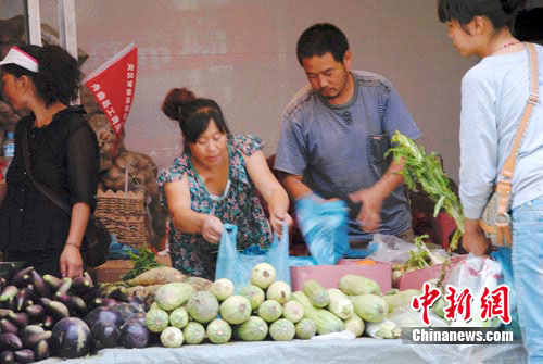 中新網(wǎng)舟曲8月20日電 (記者 侯志紅) “從14日下午開始我們我們已經(jīng)有蔬菜上市了,但目前因道路受到限制,疏菜運(yùn)輸還比較困難,因此, 疏菜成了舟曲居民的搶手貨。”舟曲縣政府附近一位菜灘的女老告訴記者。