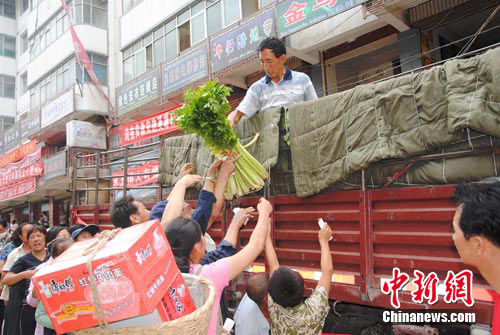 從8月8日舟曲縣突發(fā)特大泥石流之后,舟曲縣城唯一的蔬菜市場(chǎng)被堰塞湖淹沒,使本來就難以滿足供應(yīng)的舟曲縣城蔬菜供應(yīng)更加困難,舟曲縣城幾乎沒有了新鮮蔬菜。