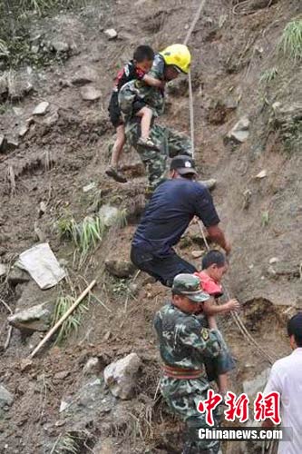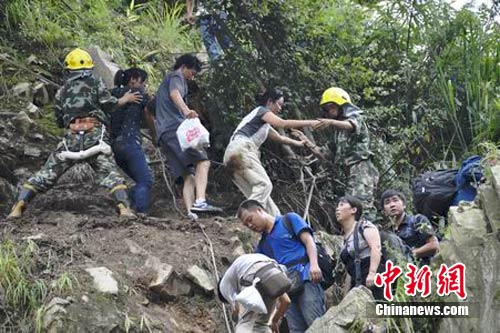 中新網汶川8月20日電(張浪 郭永全)四川阿壩州汶川消防大隊映秀消防站官兵20日打通救援通道,成功解救了被困于映秀某山上的1000余名受災民眾。