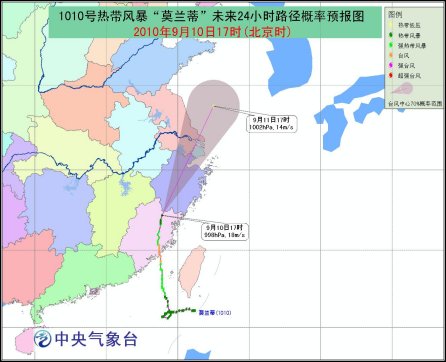 中新網(wǎng)9月10日電 據(jù)中央氣象臺(tái)網(wǎng)站消息,中央氣象臺(tái)9月10日18時(shí)發(fā)布臺(tái)風(fēng)藍(lán)色預(yù)警:今年第10號(hào)強(qiáng)熱帶風(fēng)暴“莫蘭蒂”已于9月10日14時(shí)在福建省古田縣境內(nèi)減弱為熱帶風(fēng)暴,17時(shí)“莫蘭蒂”中心位于福建省政和縣境內(nèi),就是北緯27.2度,東經(jīng)118.9度,最大風(fēng)力有8級(jí)(18米/秒),中心最低氣壓為998百帕。