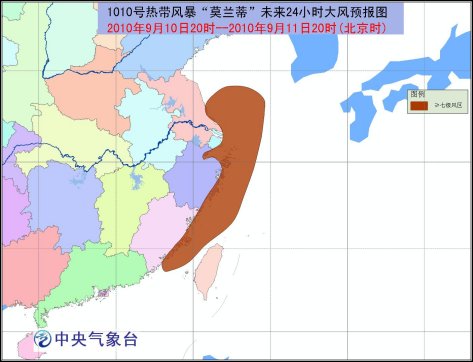 受“莫蘭蒂”、西南季風(fēng)和冷空氣的共同影響,9月10日20時(shí)到11日20時(shí),臺(tái)灣海峽、東海西部海面、臺(tái)灣沿海、福建沿海、浙江沿海、杭州灣、長江口區(qū)有7-8級(jí)大風(fēng),陣風(fēng)可達(dá)9-10級(jí);江蘇東部和南部、上海、安徽東南部、浙江大部、江西東北部和東南部、福建西北部和南部、廣東大部、廣西南部、海南中北部等地有大雨或暴雨,局地有大暴雨。