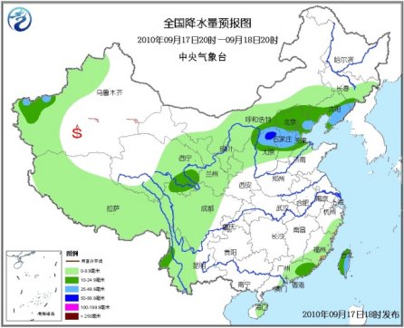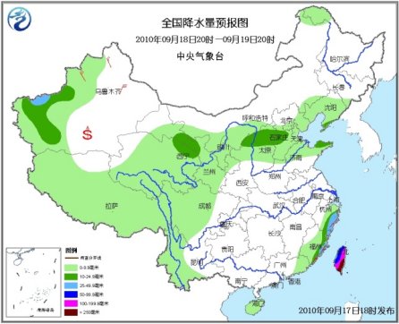 17日20時至18日20時,新疆西部、青海東部、西藏大部、甘肅中東部、寧夏、陜西北部、內(nèi)蒙古中南部、遼寧、吉林南部、華北大部、山東西北部、四川中西部、云南西部、浙江南部、福建東部和南部、臺灣、廣東中東部、海南東部等地有小到中雨或陣雨,其中,山西北部、河北中部和東部、遼寧南部、臺灣東部、新疆南疆西部山區(qū)等地的部分地區(qū)有大雨,局部暴雨;上述地區(qū)局部并伴有短時雷雨大風或冰雹等強對流天氣。新疆南疆中東部、甘肅西部等地有4~6級風,并伴有揚沙或沙塵暴。臺灣以東洋面將有7~9級大風,部分海域的風力將有10~12級,臺風中心經(jīng)過的附近洋面將有13~16級大風;東海南部海域?qū)⒂?~8級偏東風;臺灣海峽的東北風將由5~6級增加到7~8級;臺灣以南海域?qū)⒂?~7級偏西或西北風。另外,渤海將有5~7級東北風。
