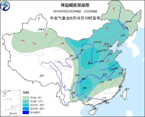 中新網(wǎng)9月19日電 據(jù)中國天氣網(wǎng)消息,19日至22日,今年入秋以來最強冷空氣將影響我國。中央氣象臺預報稱,大部地區(qū)氣溫將下降4~8℃,中東部部分地區(qū)降溫幅度可達10~14℃,局部可超過15℃;北方大部伴有4~6級偏北風。