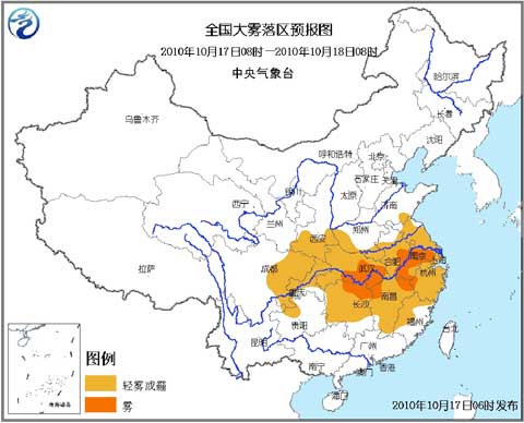 中新網10月17日電 據中央氣象臺消息,中央氣象臺10月17日06時繼續(xù)發(fā)布大霧藍色預警:預計今天(17日)早晨到上午,黃淮南部、陜西南部、江淮、江漢、四川盆地大部、重慶大部、江南大部、福建中西部等地將有輕霧或霾。